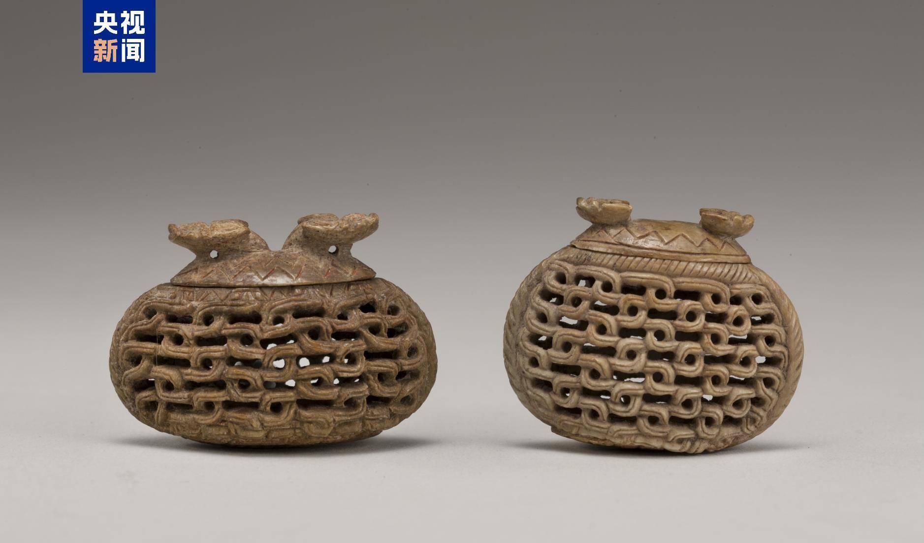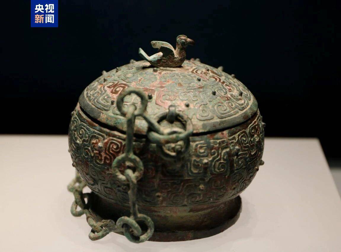 △ 春秋·骨雕香薰,与青铜链盒同墓出土,应可以随身悬挂,内放香料以散发香味。山东大学博物馆藏。