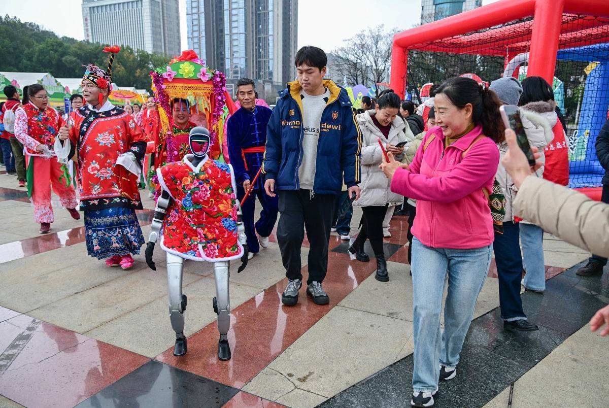 人形机器人走到哪里都是“网红”。(黄石市融媒体中心供图)